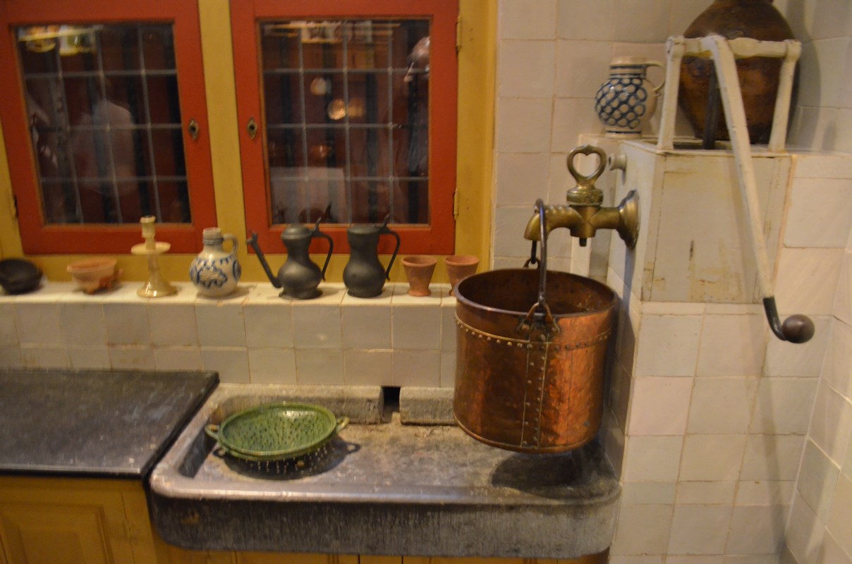 cucina si trovano l'acquaio con pompa per l'acqua che però non era abbastanza pura per essere bevuta e il grande camino a focolare aperto con stufa.