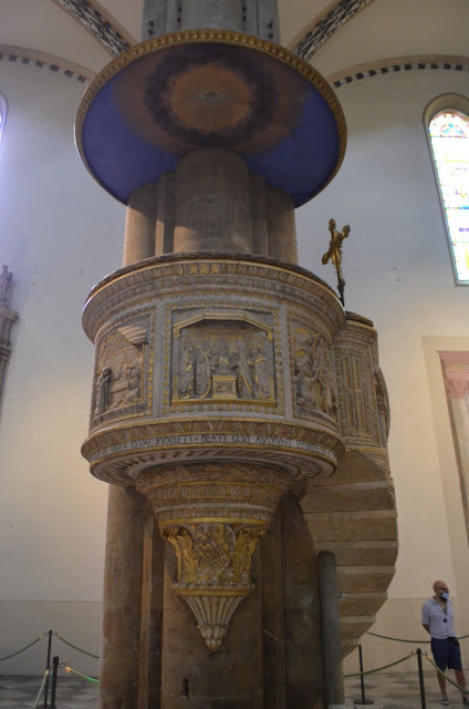 Sul pilastro che separa la terza e la seconda campata si trova il pulpito realizzato da Giovanni di Pietro del Ticcia su disegno di Filippo Brunelleschi.