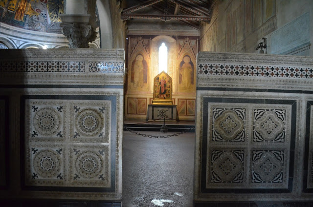 La tomba è nascosta dall'alare e dalla Madonna col Bambino in trono tra Angeli e Santi e l'Adorazione dei Magi, di Jacopo di Cione e Niccolò Gerini.