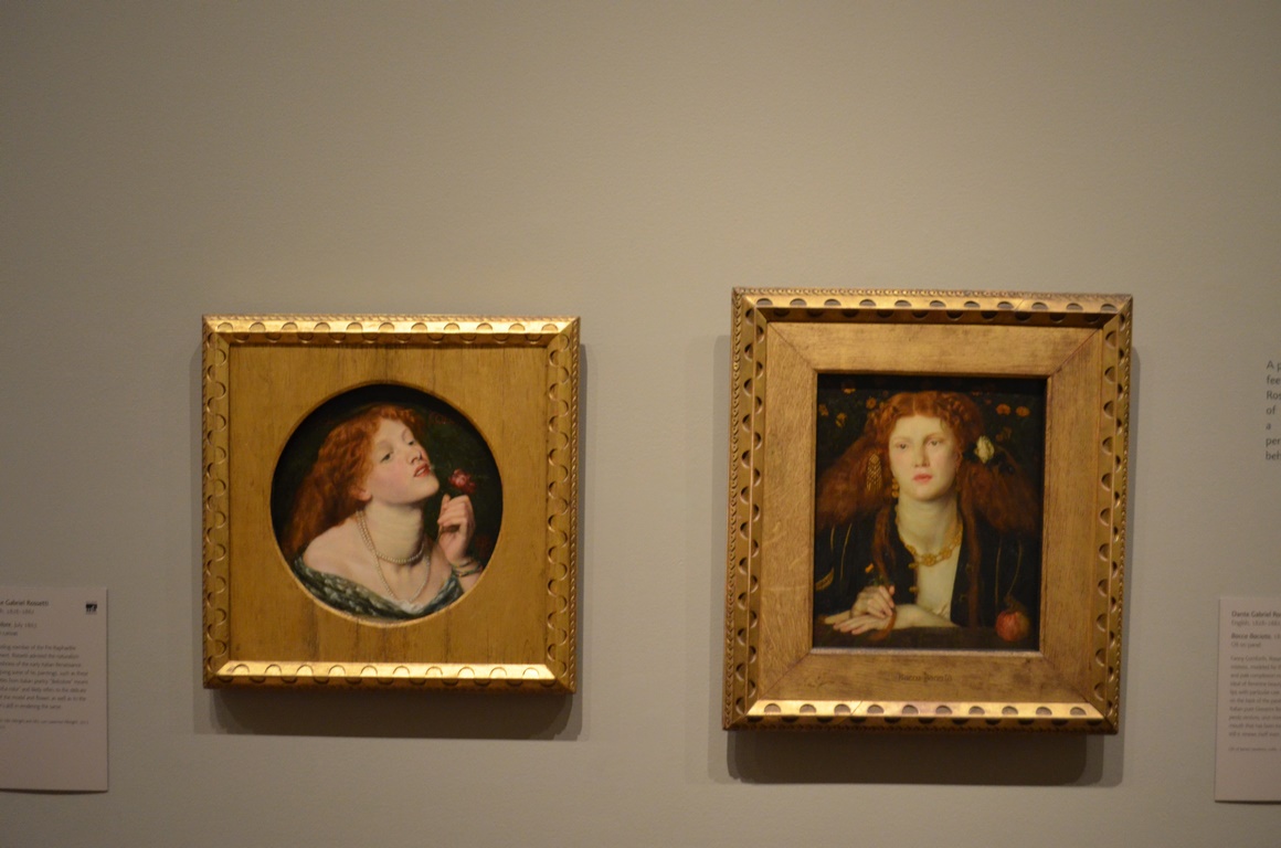 | vetrina a sinistra: Ritratto di donna con collana di perle (Lorenzo Costa - 1485/1495) / busto di giovane donna (Faenza - Italia - 1510 ca.) / cofanetto (Italia - XVI sec.) / scatola da matrimonio (Italia - 1400/1425 ca.) / calamaio (Italia - 1500 ca.) |