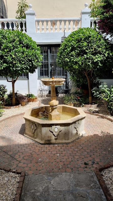 Dalla porta finestra dell'Ala Paul Bowles si può uscire nel Cortile del Padiglione arabo, piantumato con piante di mandarino e con al centro una fontana zampillante.