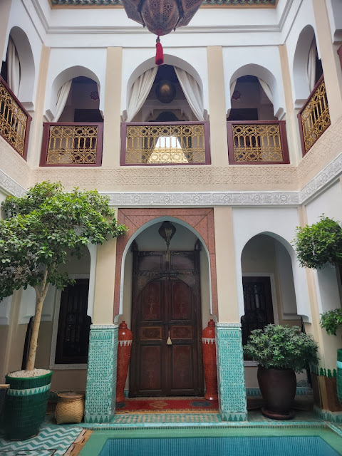 Durante la nostra permanenza in Marocco abbiamo avuto l'opportunità di soggiornare più volte nei riad della Medina di Marrakech, in antiche residenze molto ben restaurate che offrono al turista la possibilità di sperimentare l' hotellerie in queste tipiche abitazioni marocchine. Alcuni riad da noi scelti erano stati arredati in stile moderno e glamour mentre altri avevano ricreato un'ambientazione tipica locale con arredamenti artigianali. Tra quelli arredati in stile più tradizionale in cui siamo stati il più particolare e dai colori intensi è stato certamente il